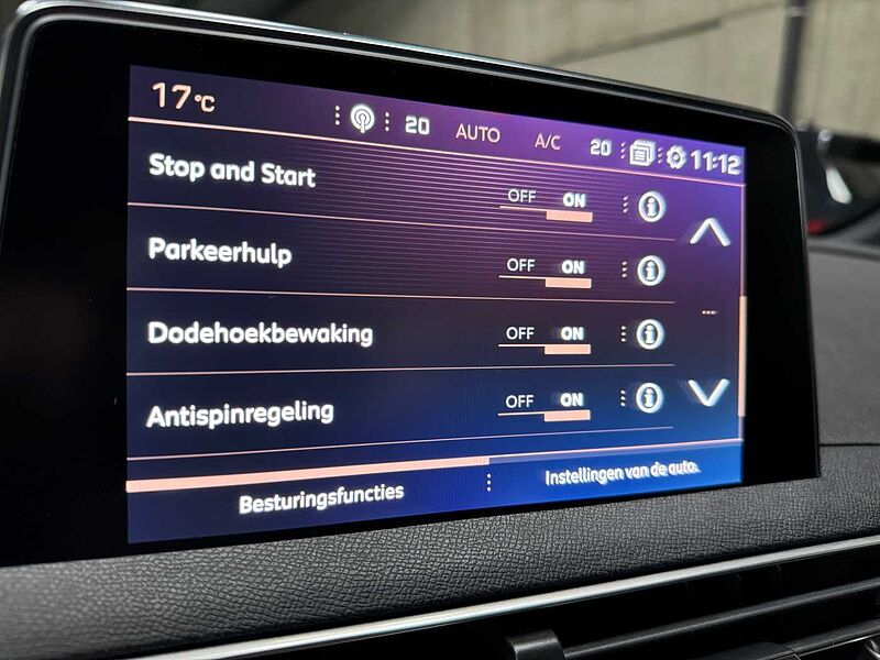 Hill Assist Descent Control (HADC), Uitschakelbare active rijstrookwaarschuwing, Actieve dodehoekverklikker, Boordcomputer, Connect 3D GPS+VC+SOS+Mirror Screen+DAB+, Cruise control met programmeerbare snelheidsbeg., Detector voor te lage bandenspanning, Digitale aanduiding temperatuur, Distance Alert, Hindernissendetector achteraan, Parkeersensoren voor+achter, Peugeot i-Cockpit: head-up display+multif.stuur., Radio /MP3+ Bluetooth+USB+bed.stuur+bi-tuner, Schakelindicator, Touchscreen, Waarschuwing bij concentratieverlies bestuurder, 12V-stopcontact op rij 3, 2 laadvlakken, Achterruitverwarming, Airconditioning dual zone, Automatische deurvergrendeling tijdens het rijden, Bestuurdersstoel in de hoogte verstelbaar, Binnenbekleding Tep/Stof, Binnenspiegel elektrochroom+Follow-me-home, Centrale armsteun, Centrale deurvergendeling met plip, Centrale vergrendeling van deuren met afstandsbed., Dubbelgetinte zijruiten en dubbelgetinte verwarmbare achterruit, Elektrisch en sequentieel bediende ruiten VR/AR, Elektrisch/verwarmde/inklapbare buitenspiegels, Elektrische parkeerrem, Elektrische stuurbekrachtiging, Handgrepen (4), Handset verlichting, Hoofdsteunen(3) achter in hoogte regelbaar, Impuls snelheid controles, Inclinatie van de buitenspiegels bij het, Isofix bevestiging op laterale plaatsen en voor, Matten, Middenconsole met 2 bekerhouders, Opbergzakken op rugleuning voorzetels, Passagiersstoel in hoogte regelbaar, Passagierszetel opklapbaar tot tafeltje, Plafond licht VR/AR+leeslampjes, Regelbare lendensteun bestuurderszetel, Ski val, Verlicht handschoenkastje, Verlichte make-up spiegel, Neerklapb.achterbank 2/3-1/3+rugleuning instelbaar, Sjorogen, Achtervleugel in koetswerkkleur met inox zijsierl., Black Diamond dak, Blauwe sfeerverlichting van de connectiezone, Buitenspiegels in Perla Zwart, Geruit rooster, Glanzend zwarte strook tussen de achterlichten, GT Line personnalisatie, i-Cockpit Amplify, Inox-sierlijsten op de deurbeschermers, Pedalen en voetsteun in aluminium, Rooster met verchroomde sierlijst en sierelementen, Satijn verchroomd voetstuk van de versnellingspook, Satijn verchroomde sierlijst van het digit.display, Satijn verchroomde Toggles Switches, Stuur afgewekt volnerfleder+verchrom.inleg+logo, Tweevoudige gescheiden uitlaat, Unicolor lak, Verchroomde bumperstrook achteraan, Verchroomde sierrand van de zijruiten, Voetsteun+pedalenset+deurdorpels in inox, Voorbumper in het 'Lion'-grijs, Zwarte zierlijst met verchroomde rand op de voorv., ABS, Active Safety Brake, Aut. ontsteken van lichten+ruitenwissers aut.voor, Auto.omschakeling tussen dim- en grootlichten, Buitenspiegels met 'Lion Spotlight'+LED-pinkers, Elektrisch bediende kinderslot, Elektronische remkrachverdeler, ESP en ASR, Frontale airbags+laterale VR+gordijn VR AR, Full LED lampen+LED mistlampen cornering, JAV Detroit 18''+225/55+pech kit, LED achterlichten, LED dagrijlichten, Remhulpsysteem, Ruitenwissers AR autom. activering bij ARuitrijden, Ruitenwissers vooraan met 'Magic Wash' systeem